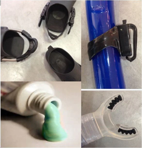 Mask - When you get a new mask, it’s important to clean it right away, as oils from the manufacturing process can cause fogging on the lens. Using a mild cleaner or non-gel toothpaste can effectively remove this film. Before each dive, apply a commercial or organic defog solution and keep the mask on your face to prevent the defog from rinsing out or drying up. Remember that a little defog goes a long way, and if you opt for a homemade or organic defog, prioritize eco-friendly options for a cleaner experience. After use, rinse the mask and store it in a cool, dry place away from direct sunlight. Regularly check the strap for signs of wear and tear, and replace it as needed. Use toothpaste as necessary to clean off any chlorine or saltwater buildup.